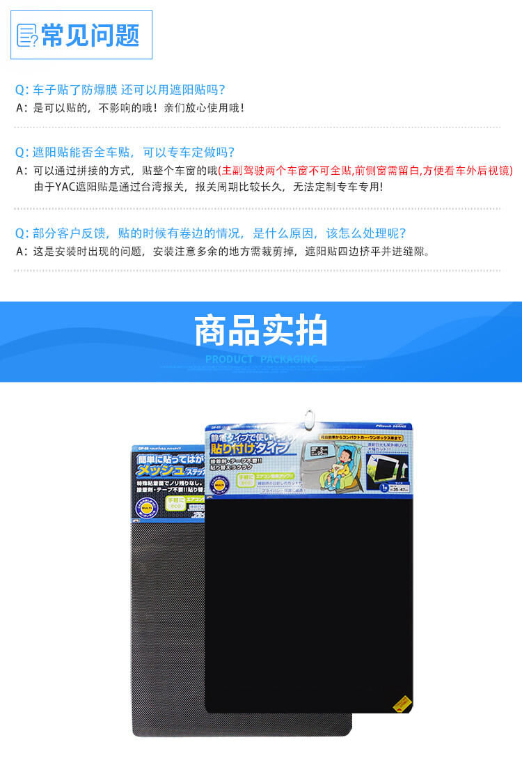 日本YAC汽车遮阳贴侧窗遮阳挡板车窗玻璃防晒隔热贴膜儿童太阳挡 DF-55网眼单片